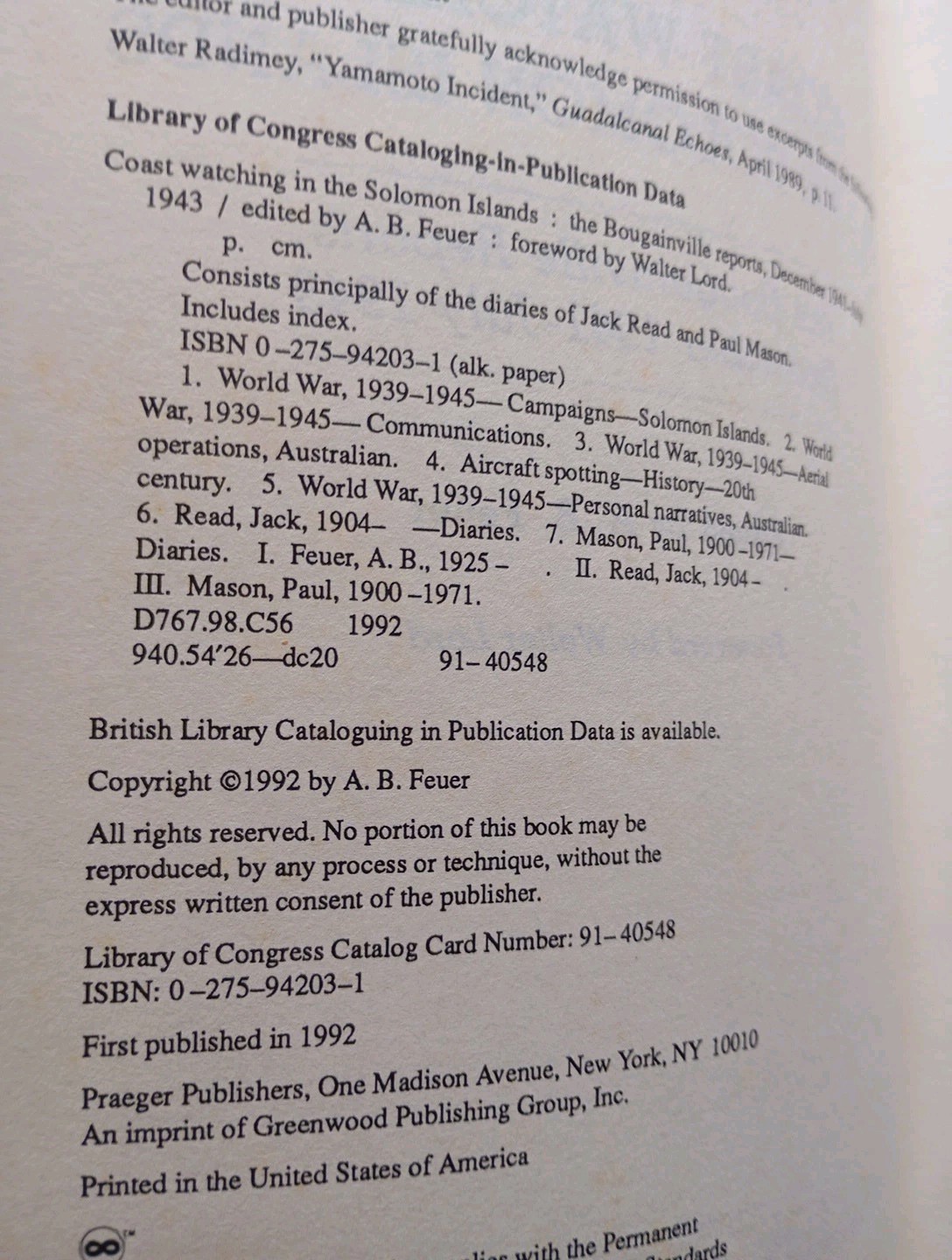 Dive into the rich narrative of “Coast Watching in the Solomon Islands: The Bougainville Reports” by A.B. Feuer, a compelling read that delves into the historical and military significance of the region during a critical period. Published in 1992 by Praeger, this hardcover textbook spans 208 pages and is an invaluable resource for those interested in the intersection of nature, history, and military strategy.